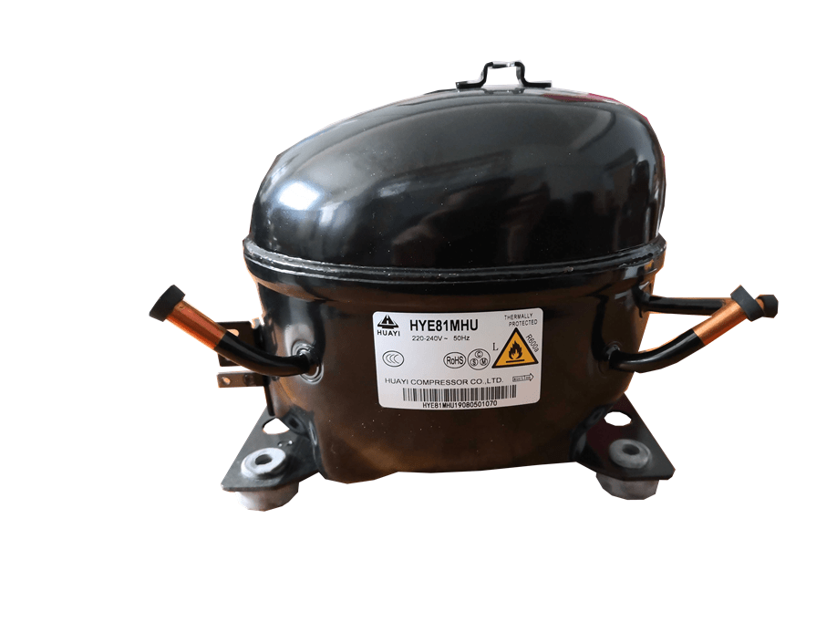 El compresor CUBIGEL-HUAYI HYE81MGU R600a es un componente de alta eficiencia diseñado para sistemas de refrigeración domésticos y comerciales ligeros que utilizan refrigerante R600a (isobutano). Su diseño compacto y confiable asegura un funcionamiento silencioso, estable y duradero en frigoríficos, congeladores y vitrinas refrigeradas de baja y media capacidad.