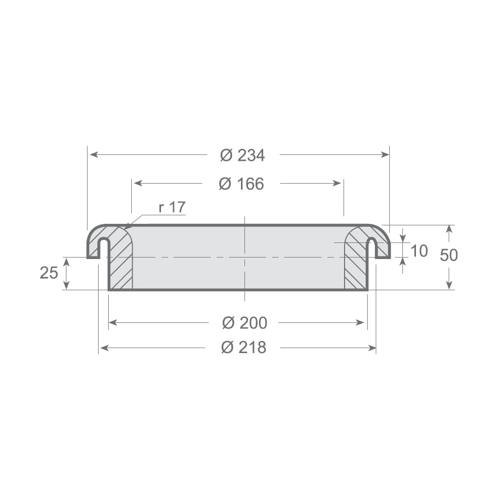 Junta Picamarro de silicona Ø232x17mm roja. Sellado resistente y duradero para sistemas de refrigeración y cámaras frigoríficas.